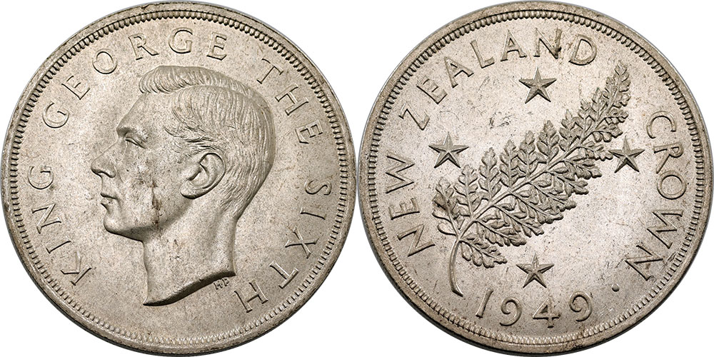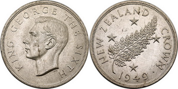 New Zealand Crown 1949. Light tone.