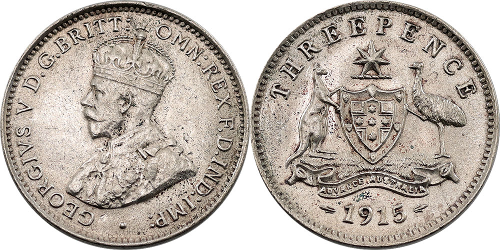 Threepence. 1915. Key date. Dark old toned.