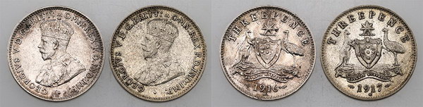 Threepence. 1916M, 1920M, 1921, 1922, 1923,...