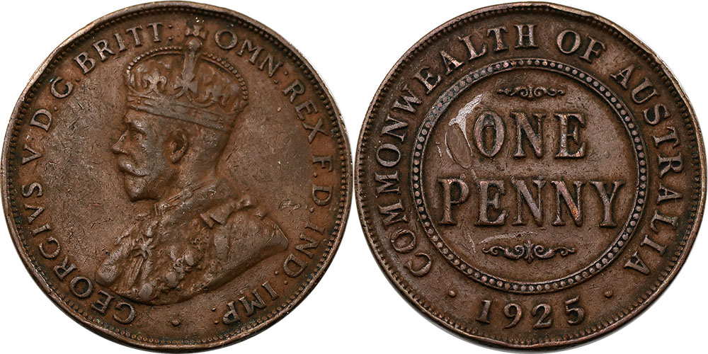 Penny. 1925. Key date. Brown, hint of 7th/8th...
