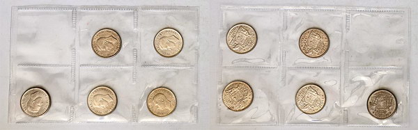 1946, 1947, 1951, 1952 (2). Light tone. (5 coins total).