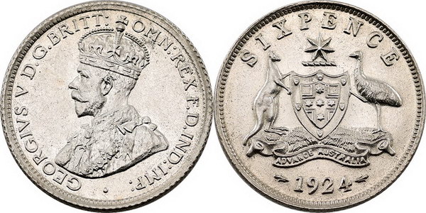 Sixpence. 1928. Light tone with some underlying...
