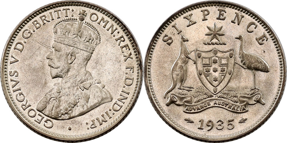 Sixpence. 1934. Some tone with underlying...
