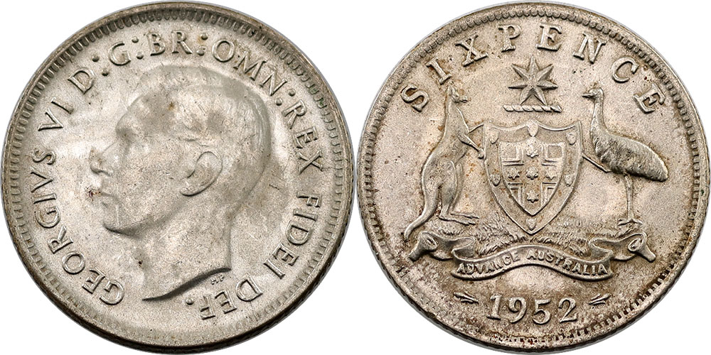 Sixpence. 1952. Scarce date. Light tone with...