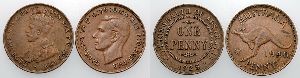 Penny. 1925, 1946. Key dates. (2 coins total).
