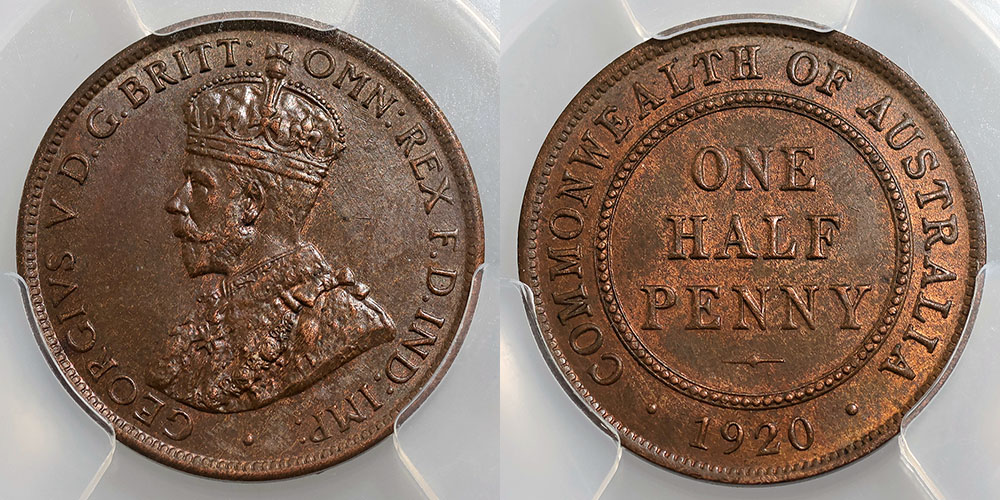 Halfpenny. 1920. Mostly mint red. Small Reverse...