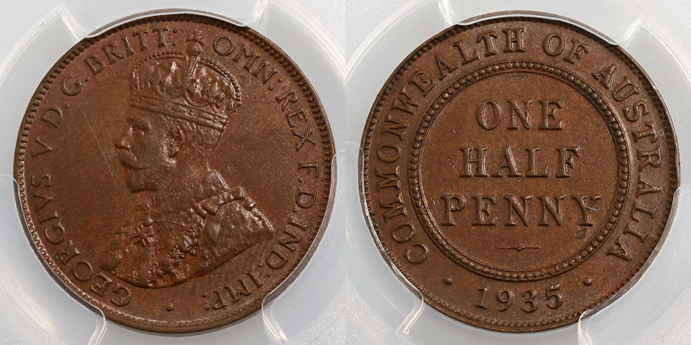 Halfpenny. 1934. Lustrous brown.