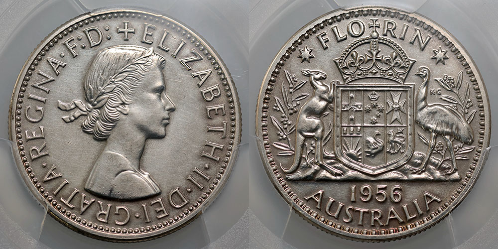 Florin. 1956 Proof Florin. PCGS graded PR 66...