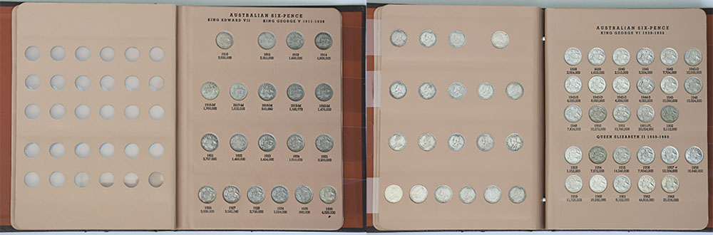 Sixpence set 1910-1963, complete. In Dansco porthole 3/6 Pence album (some marks to album).