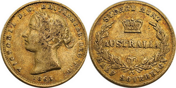 1863 Sydney Mint, Type II. Victoria Young head.