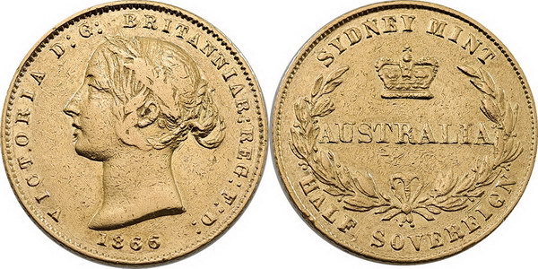 Half Sovereign. 1865 Sydney Mint, Type II....