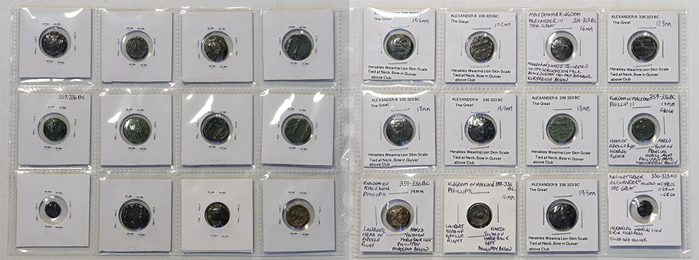 Macedonian Kingdom Alexander III (The Great) assorted bronze issues (336 BC-323 AD), 11.3-18.8mm. (12 coins total).