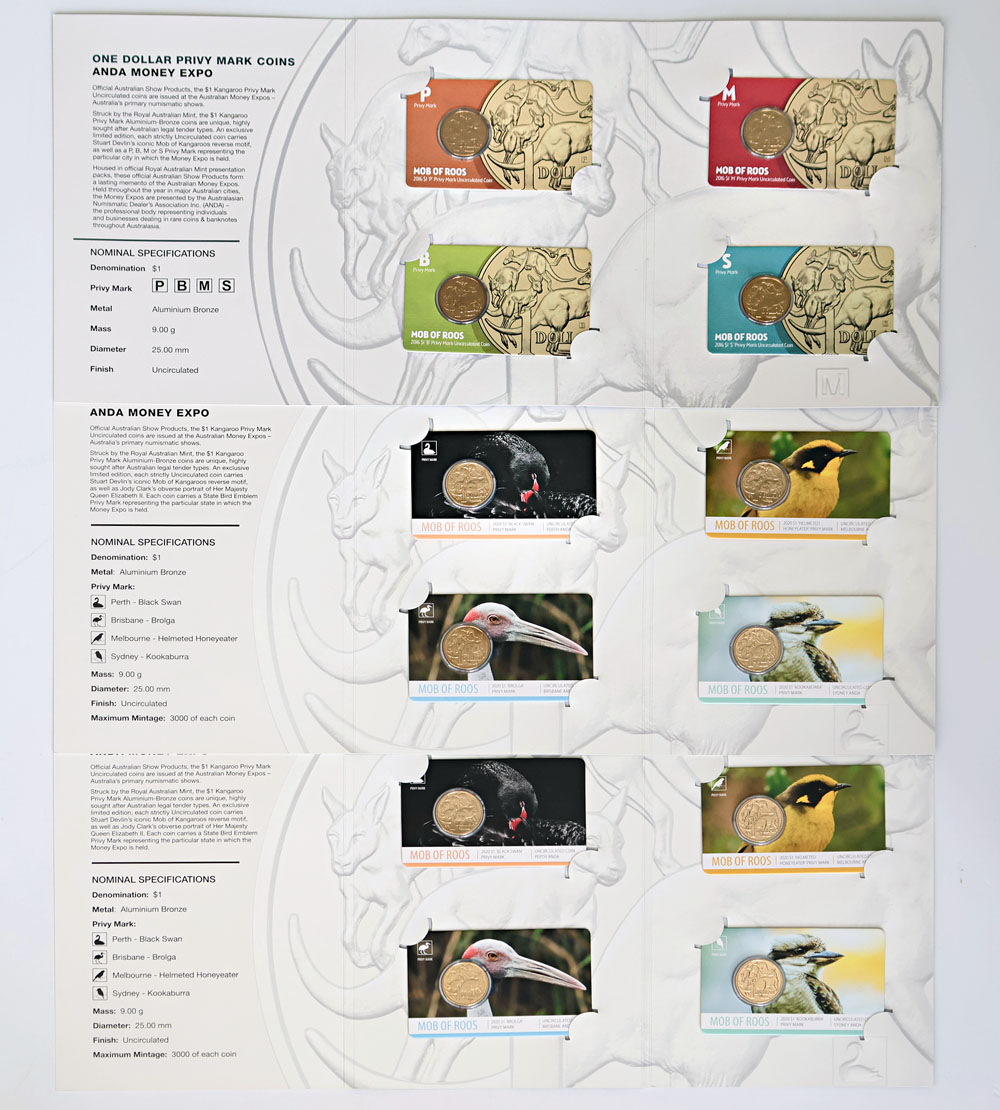 2016, 2020 (2) ANDA set of 4 B, M, P, S privy mark Dollars on cards in ANDA folders. (3 items total).