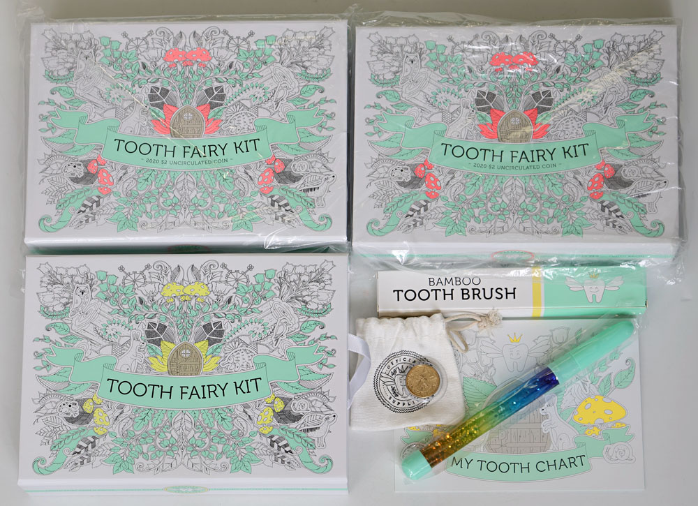 2020 (2), 2021 Tooth Fairy kits with themed 2 Dollar coin. (3 items total).