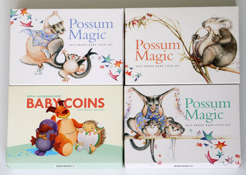 2018, 2019, 2020, 2021 Baby Proof sets. (4 items total).