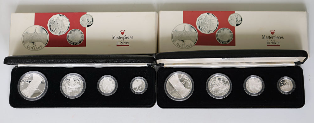 1988 Masterpieces in Silver Bicentenary 4-coin silver Proof sets (2.19 oz TSW each). (2 items total).