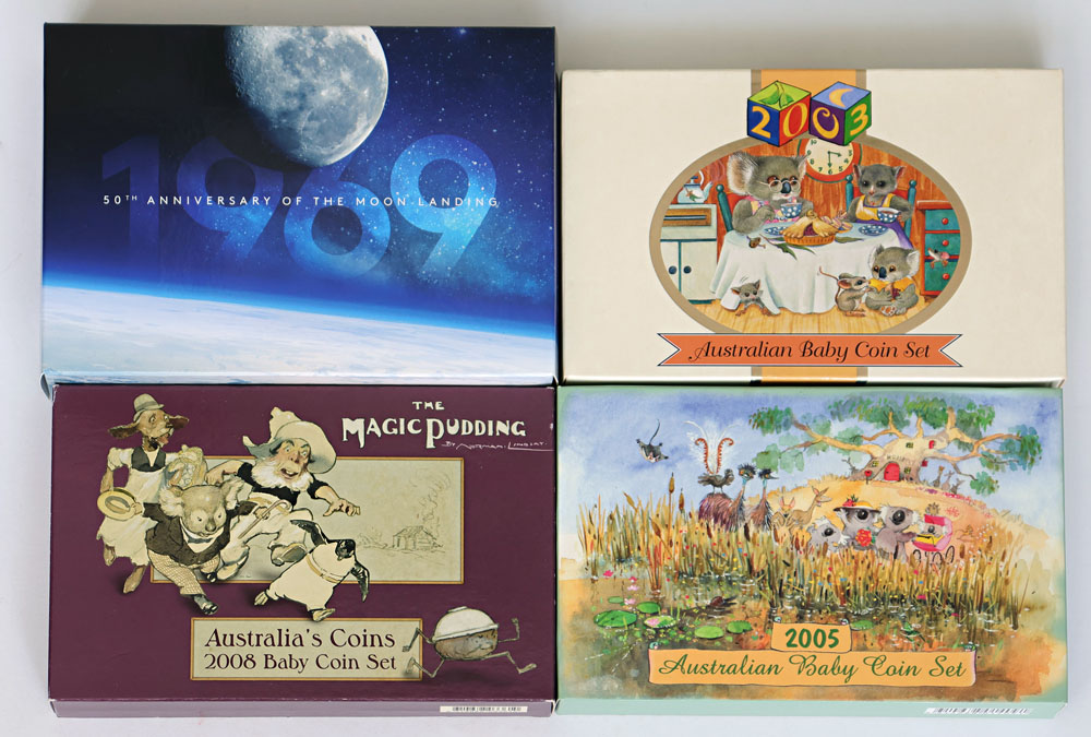2003, 2005, 2008 Baby Proof sets and 2019 Moon Landing Proof set. (4 items total).