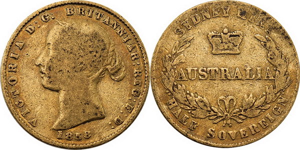 Half Sovereign. 1859 Sydney Mint. Type II,...