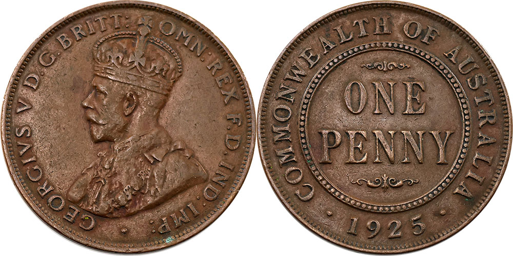 Penny. 1925. Key date. Brown, six pearls.