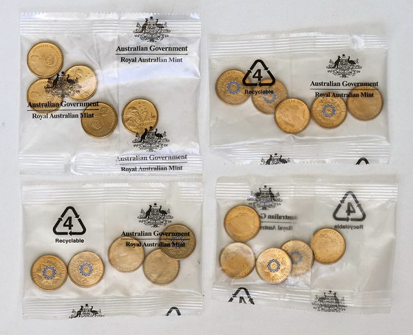Sealed RAM bags of 5 coins: 2016 50 Years Decimal Currency, 2019 Police Remembrance coloured (3 bags). High catalogue value. (4 items total).