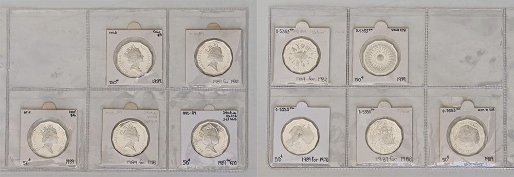 | Description: 1989 Masterpieces in Silver: 50 Cent Tributes set of 5 silver Proof 50 Cents (3.37 oz TSW). Coins only, no packs or COAs. (5 coins total). FDC |