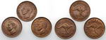 1945Y, 1946Y, 1947Y. Mostly brown. (3 coins...