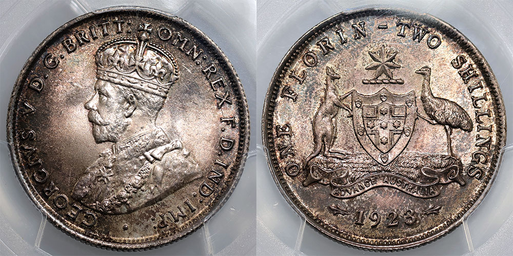 | Description: 1923. PCGS graded MS 65 (28291208). Lovely old gunmetal toned with brilliant mint bloom, sharply struck and with lovely eye appeal. Only 5 graded higher. GEM UNC |