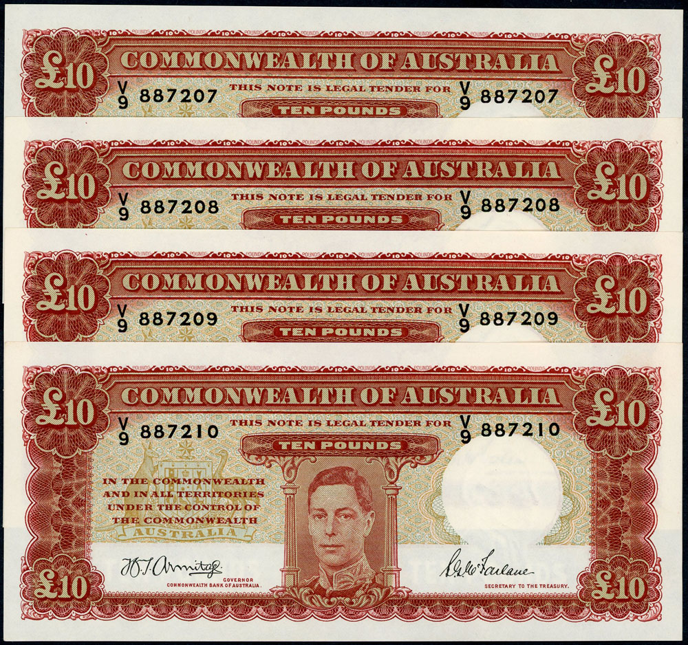 | Lot: 887 Category: Australian Superior Pre Decimal Banknotes > Ten Pound |