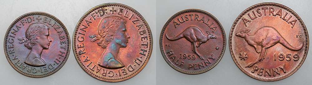 1959 Proof Halfpenny and Penny pair. Some purple tone. (2 coins total).