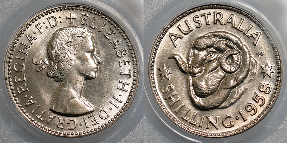 Shilling. 1958 Proof Shilling. PCGS graded PR...