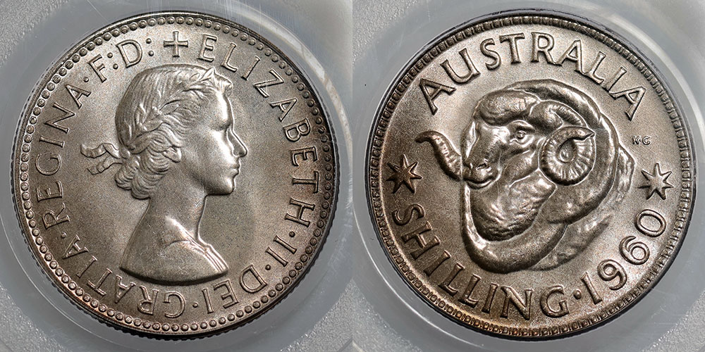 1960 Proof Shilling. PCGS graded PR 66 (18739526). Some tone.