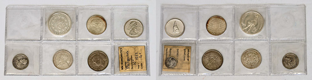 | Description: Canada 50 Cent 1967, Denmark 2 Kroner 1953NS, France silver Proof 10 Franc/2.5 Euro Petite Dancer 1997, Philippines 10 Cent 1882, NZ Half Crown 1940, Sweden 2 Kroner 1897 and Ethiopia British issue. (7 coins total). VG-FDC |