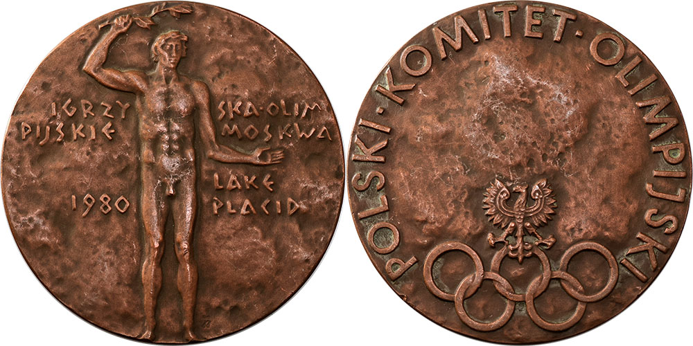 1980 Lake Placid Polish Olympics Committee copper medal (70mm).
