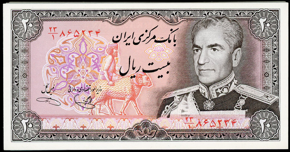 Iran, Bank Markazi 20 Rials N/D (1974) (P 100c). Part bundle of 64 notes. Catalogue at $12USD ea.