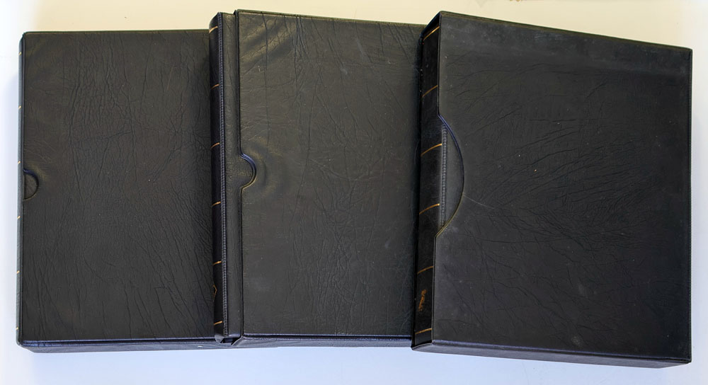 Banknote albums; Black albums with some pages and sleeve covers. Used, with some marks and old stickers etc. (3 items total).