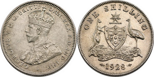 | Description: Shilling. 1928. Light tone. aVF/VF |
