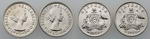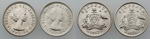 | Description: Threepence. 1960, 1961, 1962, 1963. Light tone with bloom. (4 coins total). Ch.UNC/GEM |