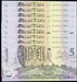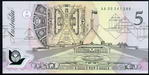 | Description: Five Dollar. 1995 polymer Fraser-Evans AA 95 (R 217AA). Recoloured wide orientation bands (circulation issue). (5 notes total). UNC |