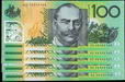 | Description: One Hundred Dollar. 1999 polymer MacFarlane-Evans (R 618b). Light hint of a centre fold. Consecutive run of 9. aU/UNC |