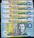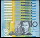 | Description: Ten Dollar. 1994 polymer Fraser-Evans First prefix $5 and $10 AA 94; consecutive run of 5 undated matching serial pairs: AA94 008577-81 (ex NPA sets). (10 notes total, no folders). UNC |