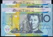 | Description: Ten Dollar. 1998 polymer MacFarlane-Evans (R 318c). Consecutive prefix matching serial run of 4; AH/AI 98 772793/94. UNC |