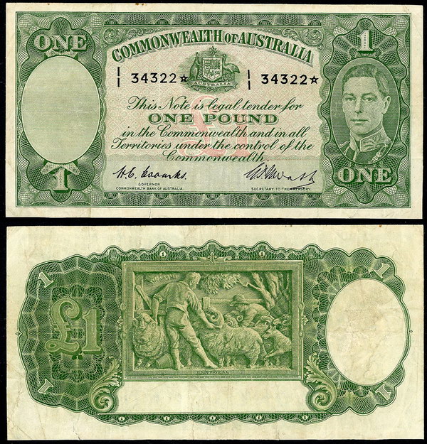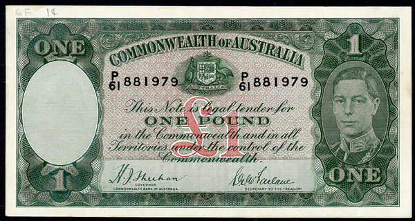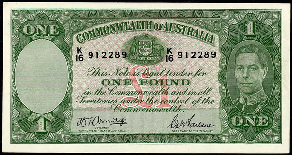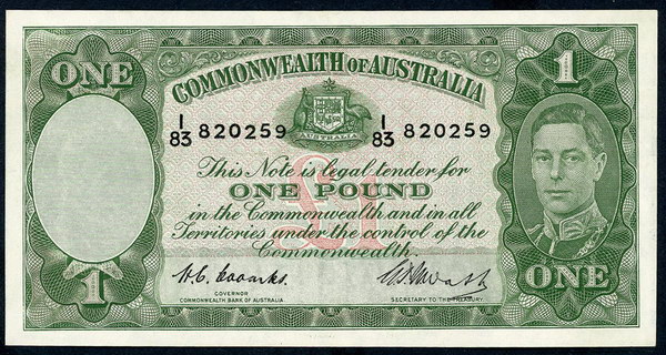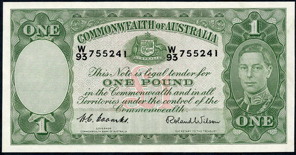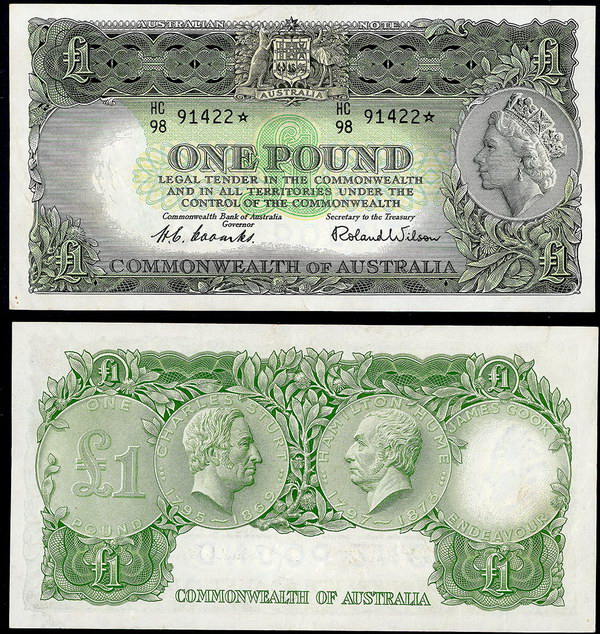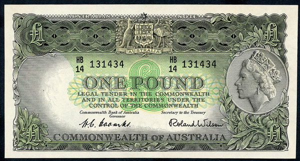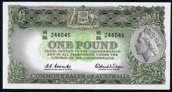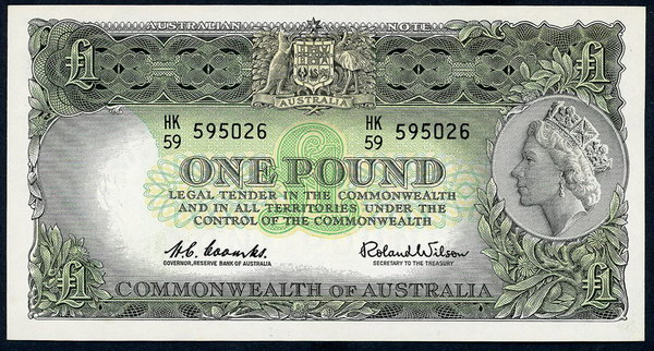 Description: One Pound. 1953 Coombs-Wilson (R 33). Commonwealth. Fresh with light flicks.   aUNC