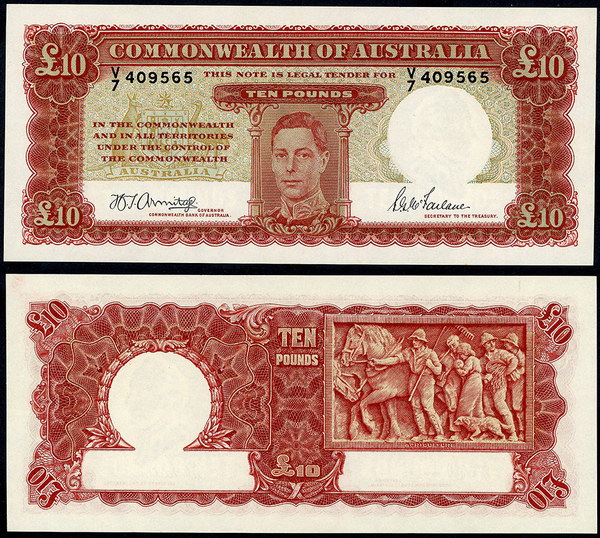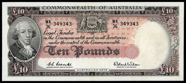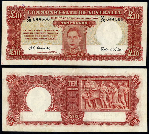 Description: Ten Pound. 1960 Coombs-Wilson (R 63). Reserve. Three folds, flicks and handling.   VF