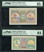 Description: Maldives 1 Rufiyaa and 2 Rufiyaa 1960 (P 2b), (P 3b). PMG graded 64 Choice Unc and 65 EPQ Gem Unc respectively (8082651-046, 7054432-005). Government Treasurer. Some marks to first note. (2 notes total).