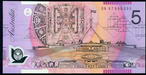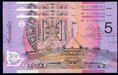Description: Five Dollar. 1997 polymer MacFarlane-Evans DN 97 (R 218bTL). Last Test Note prefix. Very rare, catalogues at $3,250.   UNC