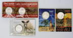Description: One Dollar. 2004 Penny 40th Anniversary subscription, 2005 Silver Kangaroo 1 oz selectively gold-plated and 2008 Kookaburra Penny subscription; fine silver Proof issues. In boxes of issue with COAs (cases a little sticky). (3 items total).   FDC