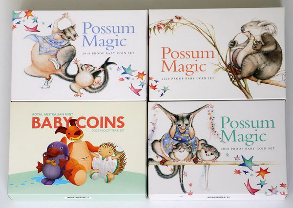 Description: Proof Sets. 2018, 2019, 2020, 2021 Baby Proof sets. (4 items total).   FDC