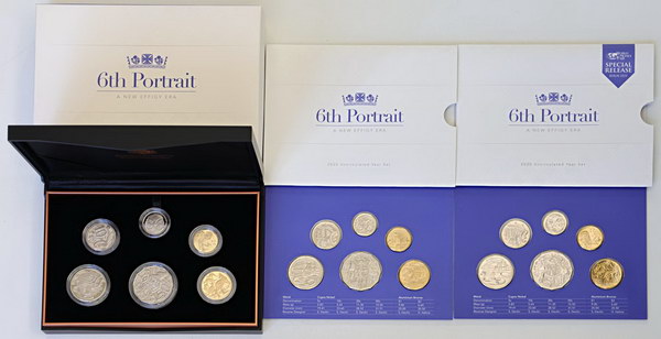 Description: Proof Sets. 2020 A New Effigy Proof set. Also 2020 A New Effigy Unc Mint set and WMF special issue Unc Mint set. (3 items total).   UNC-FDC