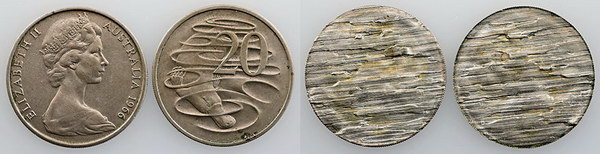 | Description: Twenty Cent. 1966 Split Planchet; matching Obv/Rev halves. Scarce as such. aEF |
