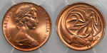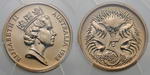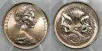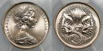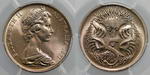 | Description: Five Cent. 1972. Key date. PCGS graded MS 68 (36822032). Low echidna variety (not attributed by PCGS). Equal highest graded. GEM UNC |